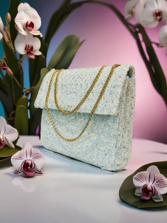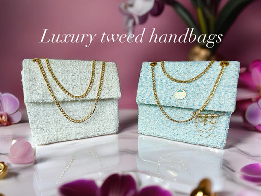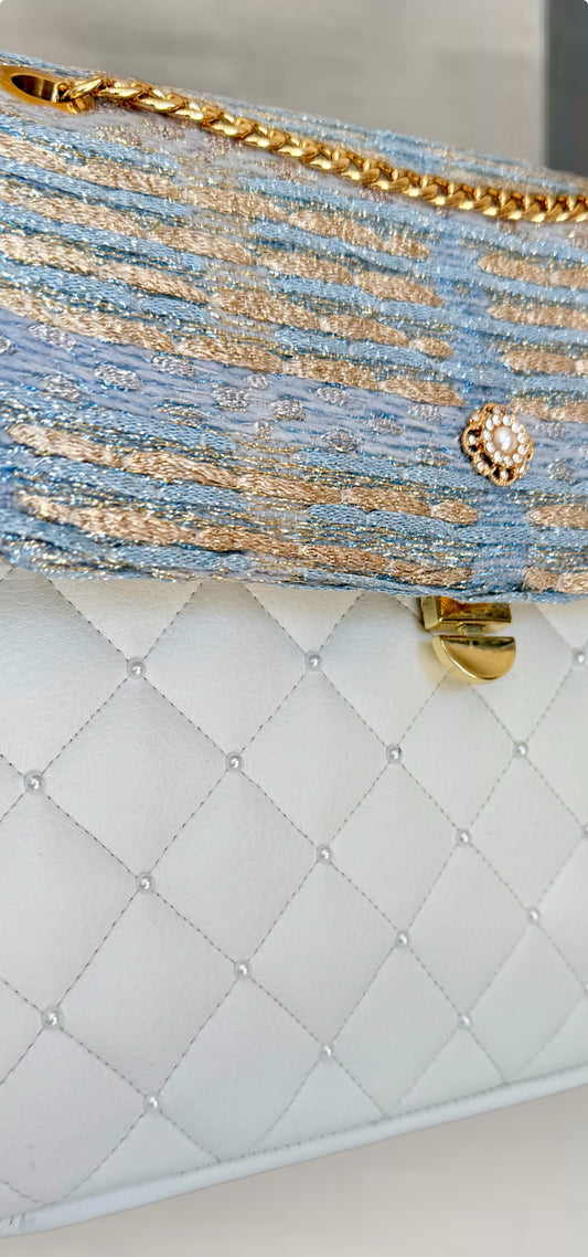 One-of-a-Kind French Couture Tweed Purse with Pearls & 24K Gold